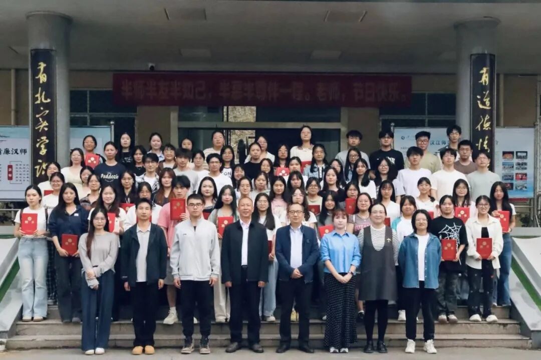 张洋宣读了《教育学院关于2025年度学生组织换届的通知》,并公布了新一届学生干部名单。学院领导及五大组织指导老师为全体2023级学生干部颁发聘书。