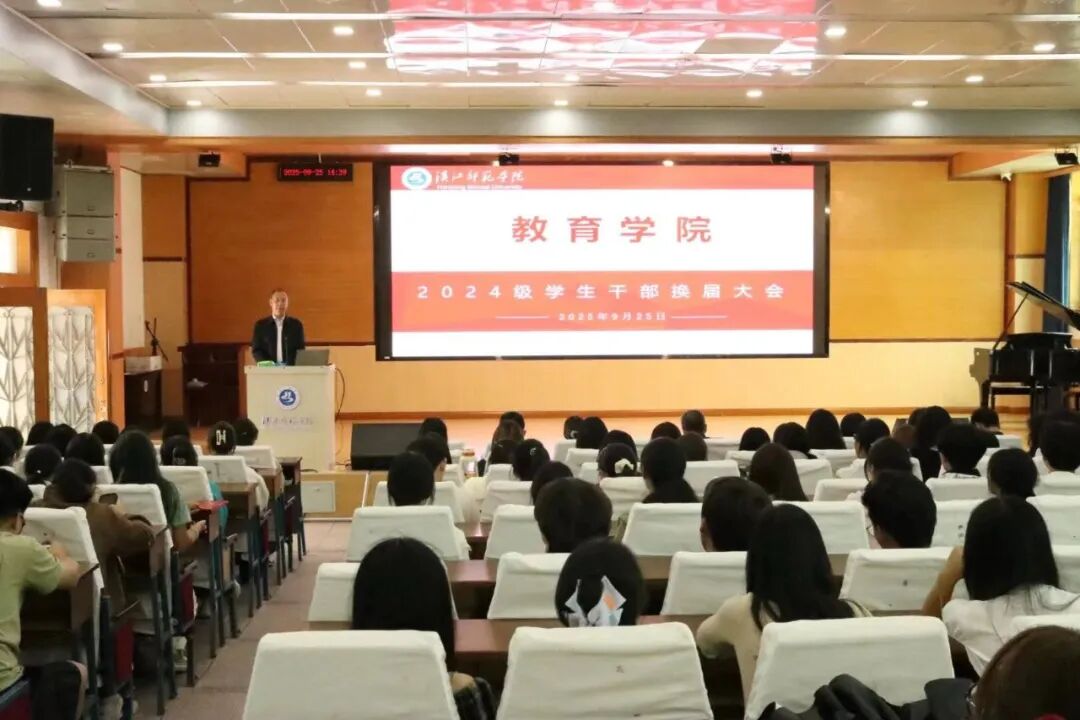 2025年9月25日下午,教育学院2025年度学生组织换届大会在西校区101报告厅顺利召开。教育学院分党委书记曹赟,院长郭顺峰,分党委副书记张洋,五大组织指导老师郭玉婷,沙巴艾提,魏杰峰,任天齐,肖莹以及23级老学生干部,24级新学生干部共同出席本次大会。