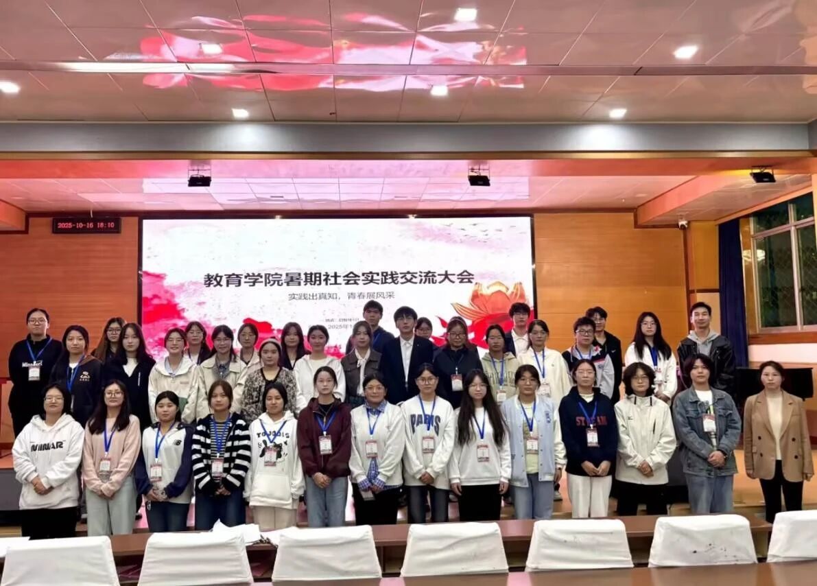 教育学院2025年暑期社会实践交流大会圆满结束。此次大会不仅总结了从乡村教学赋能、非遗文化活化到社区托管服务等实践成果,更彰显了育人初心。作为新的起点,它将继续激励学子以实际行动践行理想,在服务社会中锤炼教育担当,书写实践育人的新答卷。