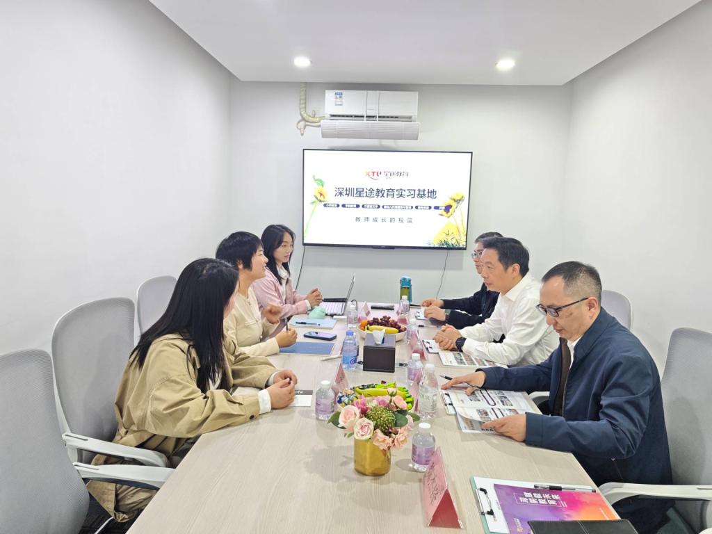 在深圳星途实习教育基地,调研组与实习生亲切座谈,详细询问工作内容、生活状况及实习收获。实习生们分享了在教学实践中的成长:有的参与幼儿园主题课程设计,有的负责辅导机构课后作业辅导,纷纷表示通过实习将理论知识与实践结合,提升了专业技能和职业认知。刘玉松代表学校向实习生致以问候,鼓励大家珍惜机会,主动学习、勇于担当,叮嘱注意安全、保持良好状态。