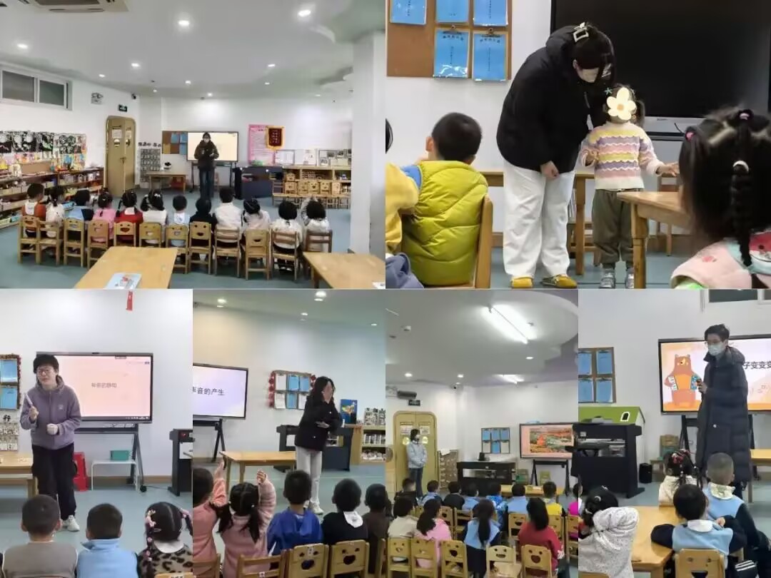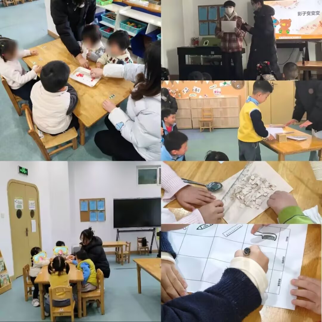 见习现场,师范生们化身"新老师",带领幼儿开启一场场趣味盎然的科学探究之旅。在《影子变变变》活动中,孩子们握着小手电筒追逐光影,在明暗交替中发现光源与影子的变化奥秘;《神奇的静电》课堂上,通过毛衣摩擦塑料尺吸引纸屑的小实验,让幼儿直观感受静电魔力;《奇妙的声音》《悬空的纸桥》《橘子宝宝真奇妙》等活动则分别从声音产生、结构力学、感官认知等角度,以动手操作、多感官体验的方式激发幼儿探究热情。活动中,同学们灵活应对幼儿的突发问题,及时调整教学节奏,在互动中践行"以幼儿为中心"的教育理念。