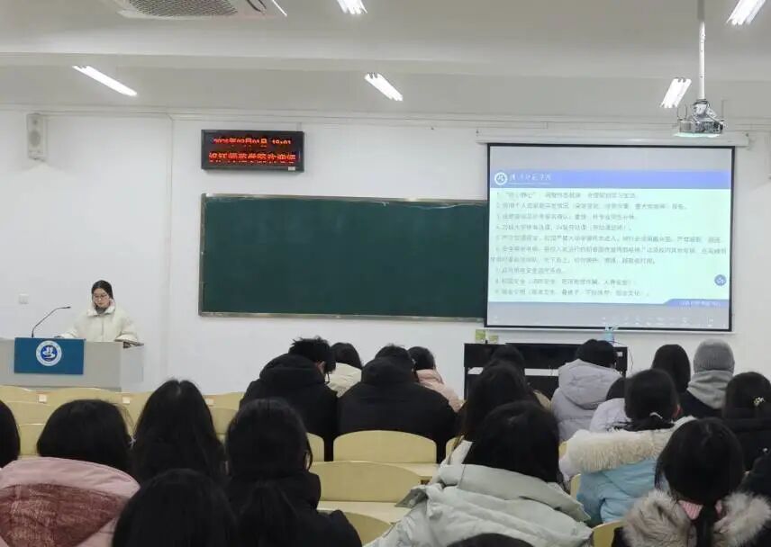 学院坚持思想引领与安全教育并重,组织各班级开展春季学期收心教育及安全教育主题班会。张洋副书记带头为大一年级学生讲授安全教育专题课,并结合校园真实案例,深入浅出地讲解消防安全、宿舍用电安全、防范电信网络诈骗、交通出行、心理健康等关键知识,帮助学生掌握应急处置流程和自护技能,强化“生命至上、安全第一”的意识。各年级辅导员、班主任分头行动,面向所带班级开展收心教育,引导学生调整作息、制定学习计划、端正学习态度,以饱满的精神状态投入新学期,在师生互动中传递安全理念,凝聚奋进力量。