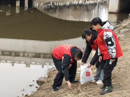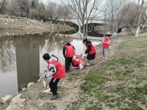 理论学习与手工实践后,志愿者们带领同学们走出教室,前往浩然河畔开展“清捡垃圾,守护碧水”志愿实践活动。同学们化身“环保小卫士”,手持环保袋,分组分工、默契配合,认真搜寻河岸周边的塑料瓶、塑料袋、纸屑、果皮等垃圾,不放过任何一处卫生死角。大家不怕脏、不怕累,弯腰捡拾、分类打包,将可回收物与其他垃圾有序分装。清捡结束后,同学们将亲手制作的环保标牌小心翼翼地悬挂在河边护栏、绿化带旁,用直观的方式提醒过往群众爱护环境、守护河道。