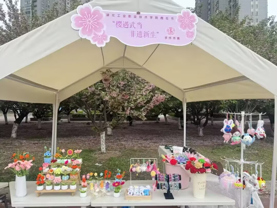 岁启丙午,春和景明,樱花漫舞间,非遗薪火相传。4月11日,“樱遇武当·非遗新生”四校联动非遗创新手作市集在湖北工业职业技术学院南区操场盛大启幕。本次市集由湖北汽车工业学院、湖北医药学院、汉江师范学院、湖北工业职业技术学院四校携手打造,汉江师范学院教育学院学前教育专业龚冰冰同学带领蒲公英志愿服务队深度参与活动策划、组织与执行全过程,以青春创意为笔,以非遗文化为墨,为这场融合地域特色与青年活力的文化盛宴注入了鲜活力量。
