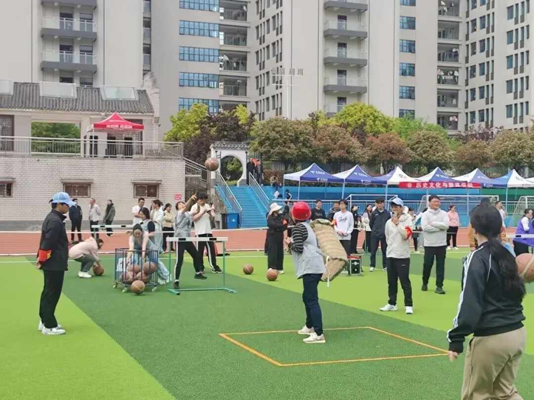 “一圈到底”项目中,老师们手拉手围成一圈,在不松手的默契配合中快速传递呼啦圈,每一次成功传递都引来阵阵掌声;投篮接力现场,老师们瞄准篮筐、精准出手,相互加油鼓劲,把课堂上的严谨认真,化作了赛场的专注与默契;特色集体项目“硕果累累”更是点燃全场,老师们同心协力、并肩作战,在趣味互动中凝聚起集体的力量,展现了教院教师团结向上、活力满满的精神面貌。
